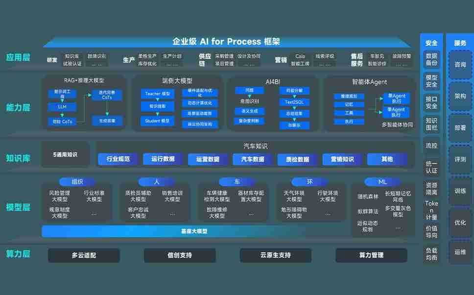 端到端的一站式AI工作空间深度融合了从企业战略规划到日常经营的全流程业务板块,,定向解决车企内部领域多、、、部门多、、链条长、、场景碎片化等难题,,,,支持车企快速构建以AI为核心的生产力写作体系,,实现任务执行与AI能力的无缝集成与交互